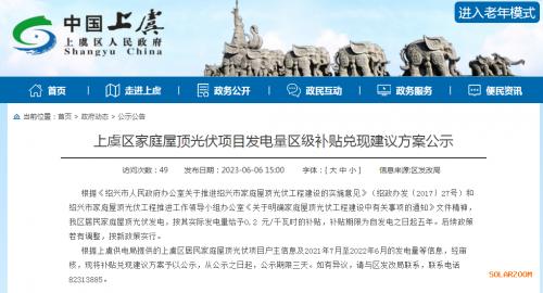 文件明確,根據(jù)《紹興市人民政府辦公室關(guān)于推進(jìn)紹興市家庭屋頂光伏工程建設(shè)的實施意見》(紹政辦發(fā)〔2017〕27號)和紹興市家庭屋頂光伏工程推進(jìn)工作領(lǐng)導(dǎo)小組辦公室《關(guān)于明確家庭屋頂光伏工程建設(shè)中有關(guān)事項的通知》文件精神,上虞區(qū)居民家庭屋頂光伏發(fā)電,按其實際發(fā)電量給予0.2元/千瓦時的補貼,補貼期限為自發(fā)電之日起五年。后續(xù)政策若有調(diào)整,按新政策實行。