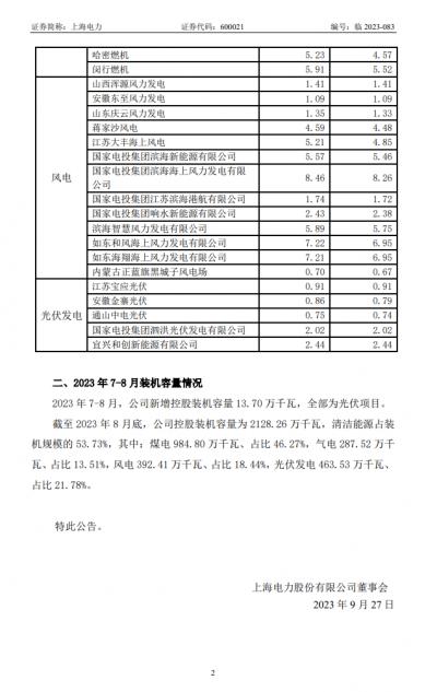 裝機(jī)方面,截至2023年8月底,公司控股裝機(jī)容量為2128.26萬(wàn)千瓦,清潔能源占裝機(jī)規(guī)模的53.73%,其中:煤電984.80萬(wàn)千瓦、占比46.27%,氣電287.52萬(wàn)千瓦、占比13.51%,風(fēng)電392.41萬(wàn)千瓦、占比18.44%,光伏發(fā)電463.53萬(wàn)千瓦、占比21.78%。