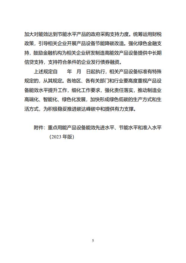 附件:關于發(fā)布《重點用能產品設備能效先進水平、節(jié)能水平和準入水平(2023年版)》的通知(征求意見稿)