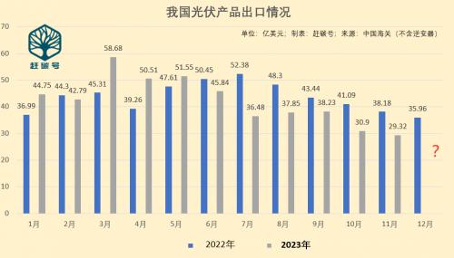 2023年11月份,我國(guó)光伏出口實(shí)現(xiàn)29.32億美元,單月同比去年下降23.2%,環(huán)比上月下降5.1%。