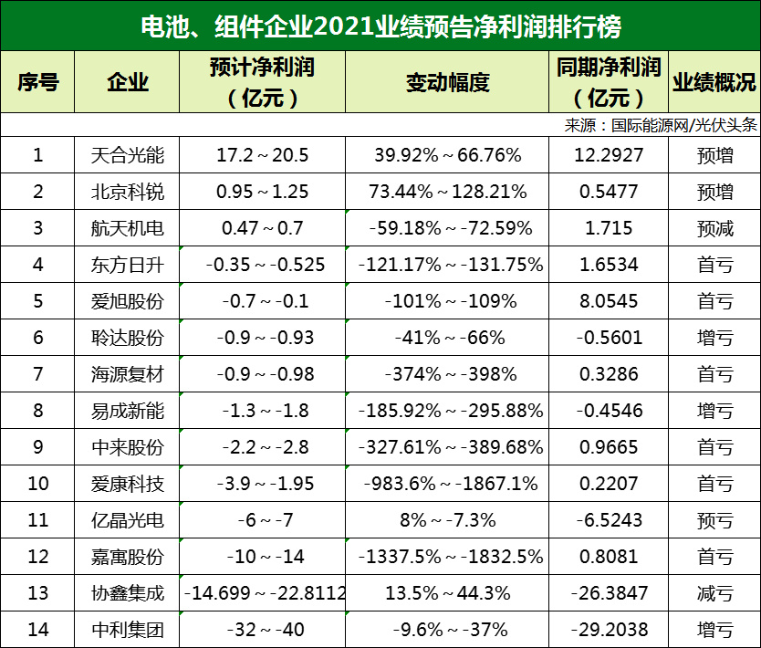 近期,上市企業(yè)陸續(xù)發(fā)布2021年業(yè)績(jī)預(yù)告,國(guó)際能源網(wǎng)對(duì)其中77家光伏企業(yè)進(jìn)行了統(tǒng)計(jì),其中53家企業(yè)凈利潤(rùn)實(shí)現(xiàn)正增長(zhǎng),占68.8%,24家企業(yè)凈利潤(rùn)為負(fù)值,占比達(dá)到31.2%。那么2021年光伏行業(yè)哪些領(lǐng)域最賺錢,又有哪些板塊站在風(fēng)口卻賠錢呢?
