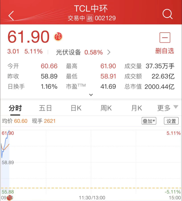 7月1日,TCL中環(huán)(SZ:002129)股價繼續(xù)延續(xù)強(qiáng)勢表現(xiàn),總市值首次突破2000億元!截至上午9時41分,公司股價大漲5.16%,總市值達(dá)到2010.63億元!自6月27日以來的五個交易日內(nèi),TCL中環(huán)股價最高漲幅高達(dá)33%!
