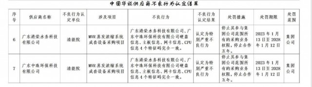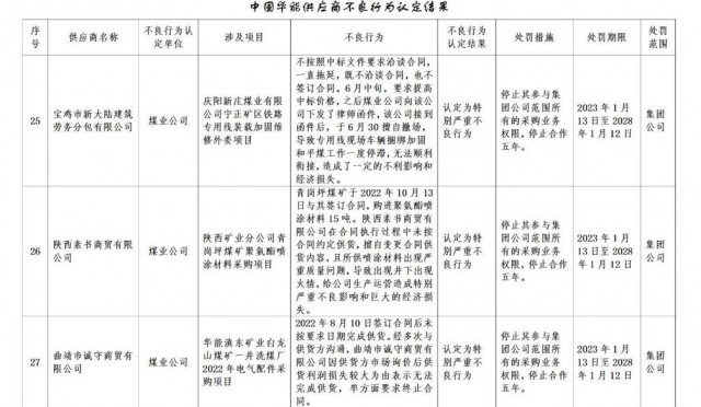 公告稱:為促進誠信履約,保證供應商產(chǎn)品質(zhì)量、服務水平,依據(jù)《中國華能集團有限公司供應商管理辦法》的有關規(guī)定,對發(fā)生誠信方面問題的供應商進行了處理。
