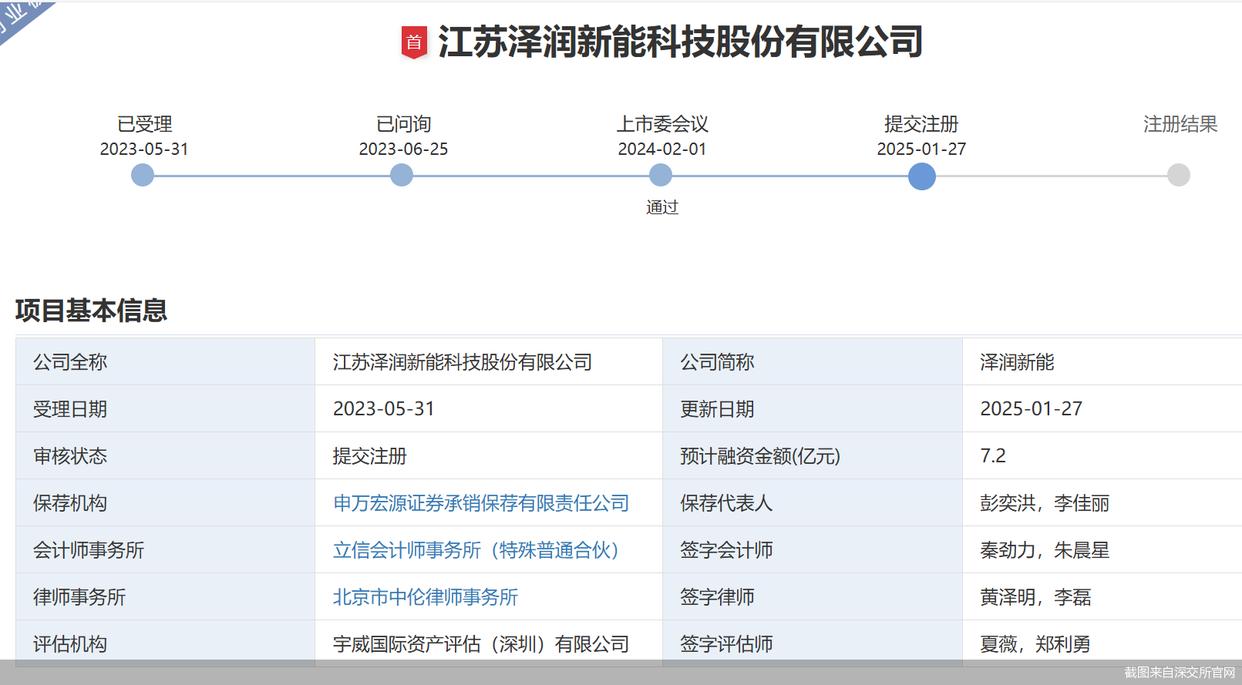 深交所官網(wǎng)顯示,澤潤(rùn)新能創(chuàng)業(yè)板IPO已于近日提交注冊(cè)。