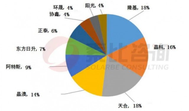 圖:2022年10月中國(guó)光伏組件生產(chǎn)企業(yè)產(chǎn)出份額
