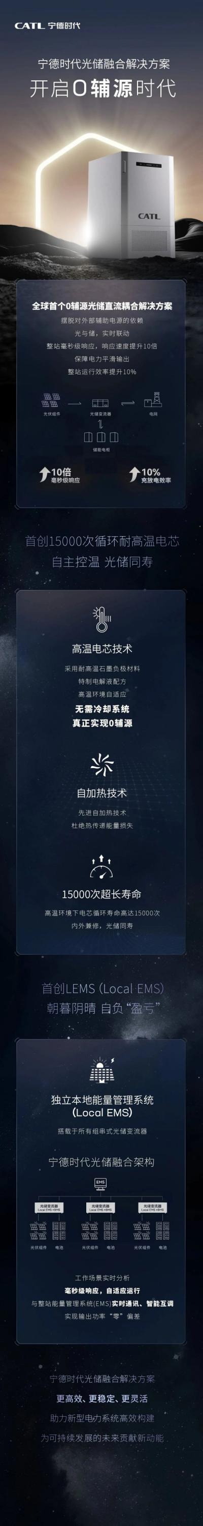 寧德時代發(fā)布了光儲融合解決方案,這是全球首個0輔源光儲直流耦合解決方案,可擺脫對外部輔助電源的依賴,光與儲,實時聯(lián)動整站毫秒級響應(yīng),響應(yīng)速度提升10倍,保障電力平滑輸出,整站運行效率提升10%。