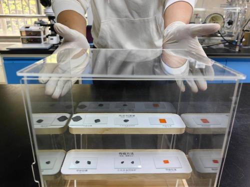 華東理工大學科研人員展示鈣鈦礦單晶晶片通用生長技術。新華社記者吳振東攝