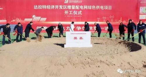 儀式上,與會人員共同為達(dá)拉特經(jīng)濟(jì)開發(fā)區(qū)增量配電網(wǎng)綠色供電項目奠基培土。
