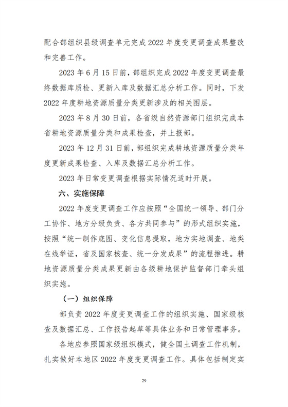 2023年6月15日前,部組織完成2022年度變更調(diào)查最終數(shù)據(jù)庫質(zhì)檢、更新入庫及數(shù)據(jù)匯總分析工作。同時,下發(fā)2022年度耕地資源質(zhì)量分類更新涉及的相關(guān)圖層。