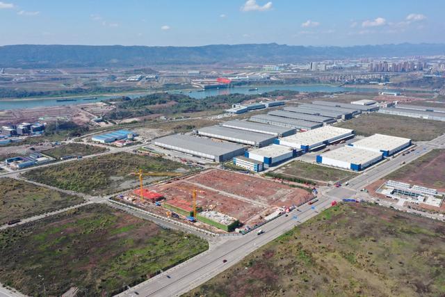 圖為重慶東港汽車電子產(chǎn)業(yè)園項目建設(shè)施工現(xiàn)場(無人機照片)。新華社記者 唐奕 攝