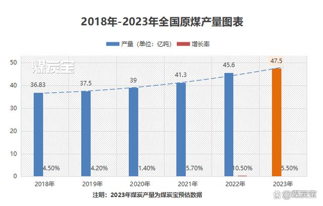 2023年1-4月全國能源生產(chǎn)情況:全國生產(chǎn)原煤15.27億噸,同比增長4.8%,煤炭寶初步預(yù)計(jì)2023年我國煤炭總產(chǎn)量為47.5億噸左右。