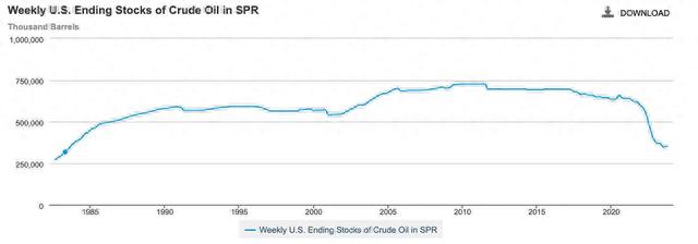 SPR是世界上最大的緊急石油儲備,通常用于穩(wěn)定原油供應(yīng)。去年,在俄烏沖突爆發(fā)之后,美國政府從SPR中抽走了1.8億桶原油。