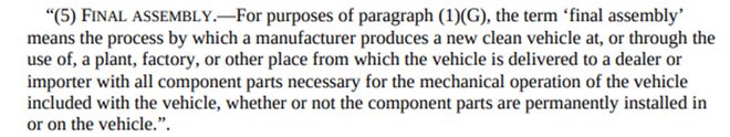 其中之一即下圖中(G)條款,車輛的總裝須發(fā)生在北美地區(qū)之內(nèi)。