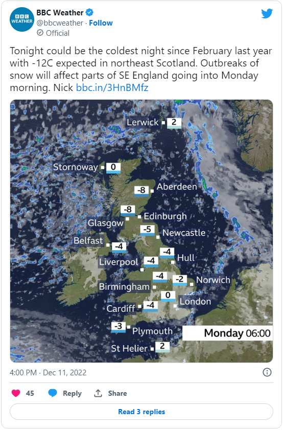 據(jù)了解,英國氣象局在上周四之前發(fā)布了黃色冰雪天氣預(yù)警,而到上周日晚上,倫敦的氣溫將降至零下3攝氏度(26.6華氏度),這將增加供暖需求。英國國家電網(wǎng)公司的數(shù)據(jù)顯示,周一下午5點的用電量預(yù)計將達(dá)到46,695兆瓦的峰值,高于周日的42,930兆瓦的峰值。