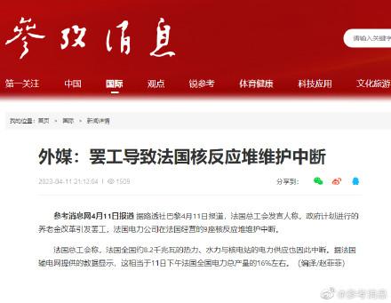 據(jù)路透社巴黎4月11日報道,法國總工會發(fā)言人稱,政府計劃進行的養(yǎng)老金改革引發(fā)罷工,法國電力公司在法國經(jīng)營的9座核反應(yīng)堆維護中斷。