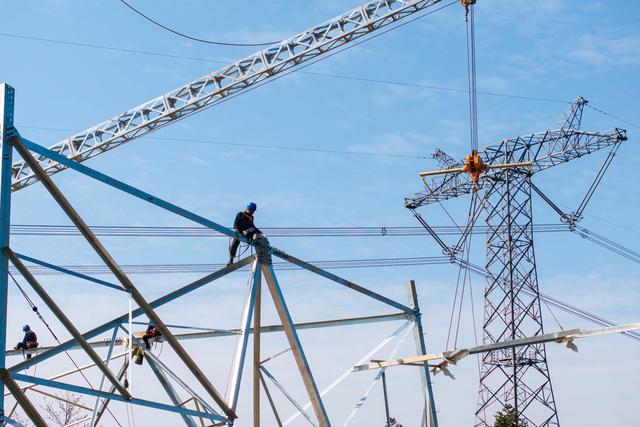 當日,在湖南省益陽市安化縣冷市鎮(zhèn),湖南省送變電工程有限公司電力工人抓緊推進“寧電入湘”工程組塔工作。“寧電入湘”特高壓線路工程是我國首個沙漠、戈壁、荒漠地區(qū)風電光伏基地外送電的特高壓工程。工程建成投運后,湖南將用上來自西北的清潔能源。 (新華社)