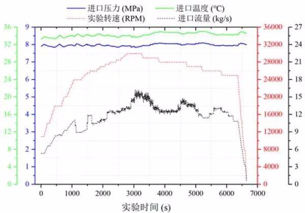 科研人員對測試平臺進(jìn)行了改進(jìn),優(yōu)化了壓縮機(jī)實(shí)驗(yàn)循環(huán)系統(tǒng),使得實(shí)驗(yàn)進(jìn)口狀態(tài)始終穩(wěn)定在設(shè)計(jì)參數(shù)(8MPa,35℃)附近;改進(jìn)了壓縮機(jī)進(jìn)口狀態(tài)測量方法,采用間接測量法,極大地提高了壓縮機(jī)進(jìn)口溫度測量精度及響應(yīng)特性,進(jìn)口溫度間接測量誤差小于0.025℃,遠(yuǎn)小于現(xiàn)有A級溫度傳感器測量誤差。