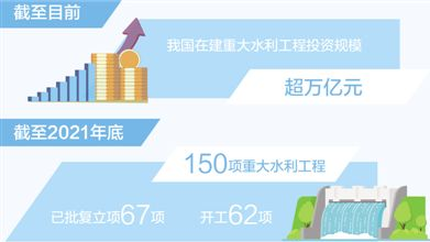 一道道大壩橫亙江河,一條條管道攀越山嶺,一座座水庫攬山擁水……一批基礎(chǔ)性、樞紐性、戰(zhàn)略性重大水利工程拔地而起,國家水網(wǎng)建設(shè)加快推進。水利部數(shù)據(jù)顯示,150項重大水利工程建設(shè)在加快實施,截至2021年底,已批復(fù)立項67項,開工62項。截至目前,我國在建重大水利工程投資規(guī)模超萬億元。