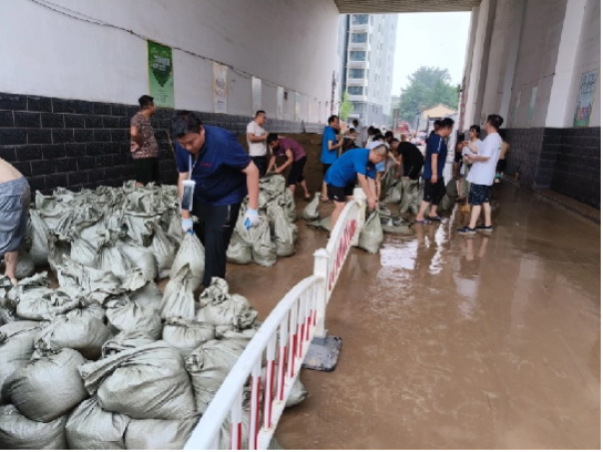 二勘局華誼物業(yè)公司黨總支搶險救援突擊隊為在京涿各住宅項目部關鍵部位配備防汛沙袋700余個,最大限度降低洪災造成的危害;冒雨為北京?;奂卧沸^(qū)抽排積水、搶修自來水供水管道。