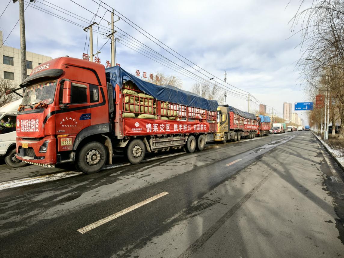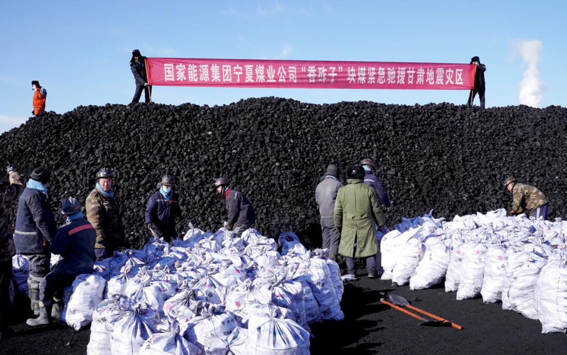 寧夏煤業(yè)心系災(zāi)區(qū)、迅速響應(yīng),冒著零下20℃嚴(yán)寒,組織機(jī)關(guān)和一線職工精選優(yōu)質(zhì)的“香砟子”塊煤進(jìn)行人工裝袋裝車(chē)準(zhǔn)備送往災(zāi)區(qū)。10輛滿(mǎn)載價(jià)值40萬(wàn)元的“香砟子”塊煤愛(ài)心車(chē)隊(duì)相繼駛離梅花井煤礦、石槽村煤礦煤場(chǎng),把能源央企最深的牽掛送往甘肅地震災(zāi)區(qū),幫助受災(zāi)群眾溫暖過(guò)冬。