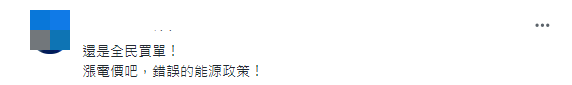 “還是全(臺灣)民(眾)買單!漲電價吧,錯誤的能源政策!”