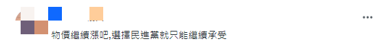 還有島內(nèi)網(wǎng)民評論道,“物價繼續(xù)漲吧,選擇民進黨就只能繼續(xù)承受”。