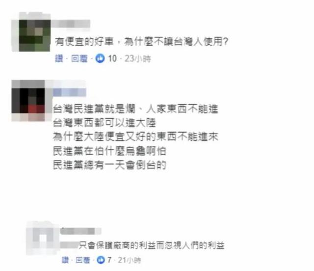 根據(jù)臺(tái)灣地區(qū)現(xiàn)行政策,大陸汽車整車、底盤及部分零組件仍被列為“禁入項(xiàng)”。而島內(nèi)民眾對(duì)民進(jìn)黨當(dāng)局的做法并不買賬,相關(guān)報(bào)道也引發(fā)網(wǎng)民“吐槽”——“有便宜的好車,為什么不讓臺(tái)灣人使用”“民進(jìn)黨能讓它進(jìn)來嗎?那豈不是影響了歐美進(jìn)口車的行情”。更有不少批評(píng)聲音指出,島內(nèi)汽車市場在貿(mào)易保護(hù)主義作用下簡直是“一潭死水”,創(chuàng)新能力越來越弱。