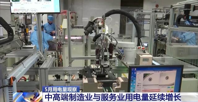 從各地亮眼的用電量數據中,記者還發(fā)現,今年我國在中高端制造業(yè)與服務業(yè)的用電量都有顯著的增長,5月份,高技術及裝備制造業(yè)、服務業(yè)用電量增長均高于全社會用電量。