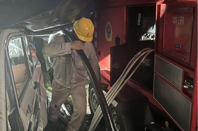 國(guó)網(wǎng)湖南岳陽(yáng)供電公司員工在團(tuán)西排水點(diǎn)開展抽排水臨時(shí)電源施工。