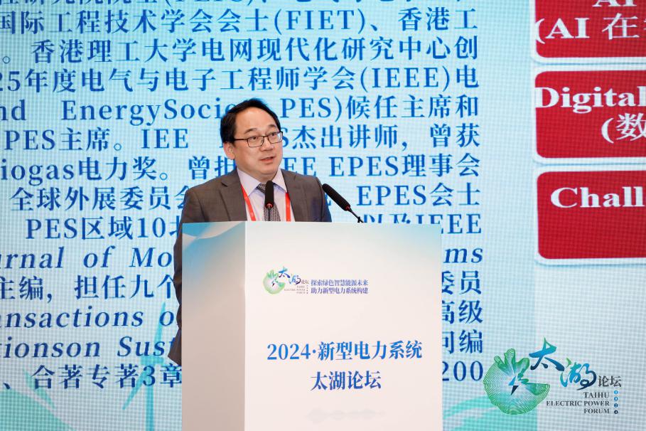 加拿大工程院院士、香港理工大學鐘志勇教授作了題為《智能電網(wǎng)技術革新:人工智能和數(shù)字孿生的新機遇與挑戰(zhàn)》的主旨報告