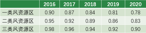 表1: 2016-2020年陸上風電上網(wǎng)標桿電價水平逐年下調幅度(單位:元/千瓦時)