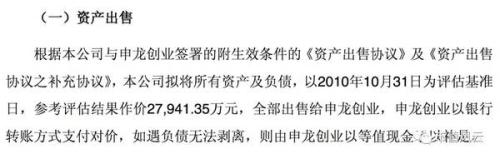 但是,我大A股的大股東們豈是凡夫俗子,都有起死回生的妙招,何況只是半死不活。只見(jiàn)控股股東申龍創(chuàng)業(yè)一掃三年萎靡,一手發(fā)動(dòng)賣(mài)賣(mài)賣(mài)技能保利潤(rùn),一手祭出重組大法,直接賣(mài)殼走人。