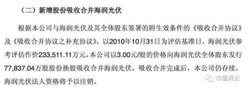 根據(jù)報(bào)告書(shū),原海潤(rùn)光伏2008年、2009年和2010年1~10月實(shí)現(xiàn)的凈利潤(rùn)分別為2.11億、0.26億(據(jù)說(shuō)是受金融危機(jī)影響)、2.7億,妥妥的優(yōu)質(zhì)資產(chǎn)。