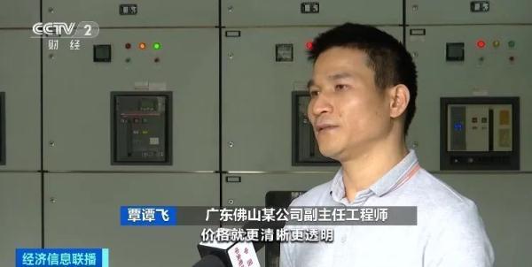廣東佛山某公司副主任工程師 覃譚飛:八到十天左右,可以在里面選各種售電公司,套餐更豐富。價格更清晰、更透明,測算一年下來至少能省一百萬元以上電費。