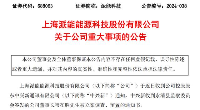 5月19日晚間,科創(chuàng)板公司派能科技公告稱,公司董事長韋在勝被立案調(diào)查、留置。