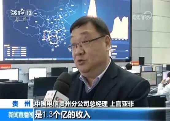 “中國(guó)電信貴州分公司總經(jīng)理 上官亞非:我們?cè)?016年的時(shí)候是1500萬(wàn)的收入,在2017年的時(shí)候是5300萬(wàn)的收入,2018年本來定的計(jì)劃是八千萬(wàn)的收入,結(jié)果現(xiàn)在我們統(tǒng)計(jì)出來是1.3個(gè)億的收入。增長(zhǎng)超過百分之百?!?/p>