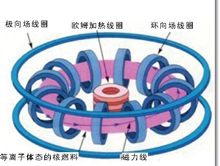 還有什么約束辦法嗎?因?yàn)榫圩冃枰蟽|度高溫,不能用任何容器盛裝,所以人類想到用強(qiáng)磁場把帶電粒子懸浮起來,即磁約束。