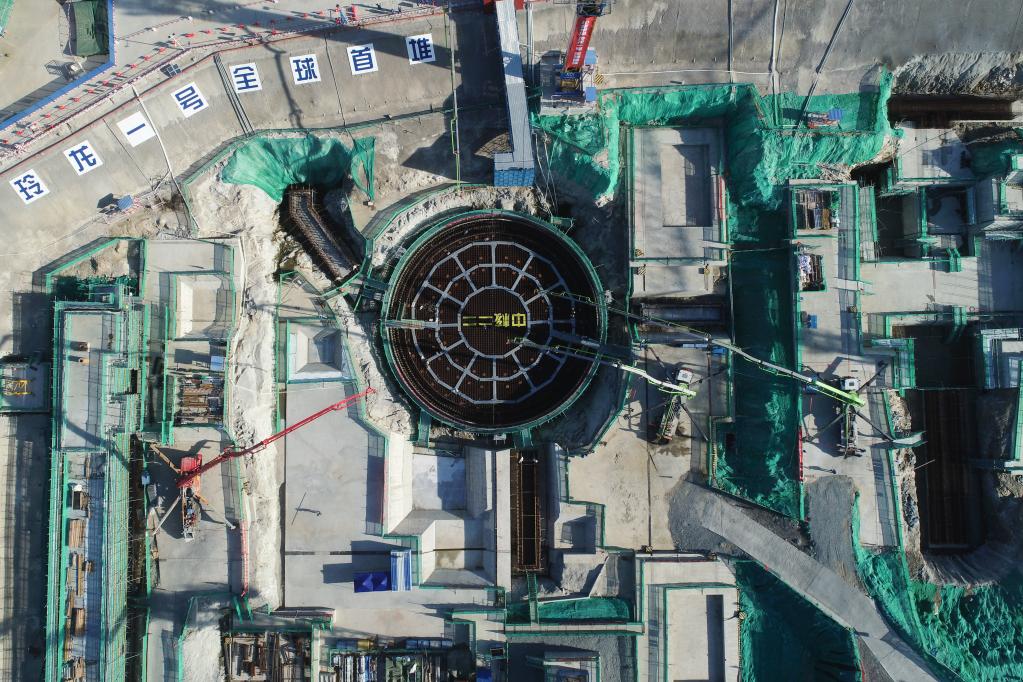新華社照片,昌江(海南),2021年7月13日 “玲龍一號(hào)”全球首堆在瓊開工 這是7月13日拍攝的海南昌江“玲龍一號(hào)”施工現(xiàn)場(無人機(jī)照片)。新華社發(fā)