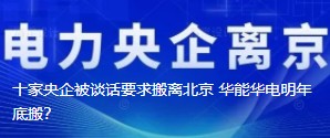 十家央企被談話要求搬離北京 華能華電明年底搬?