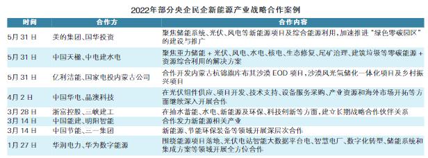 2022年部分央企民企新能源產(chǎn)業(yè)戰(zhàn)略合作案例