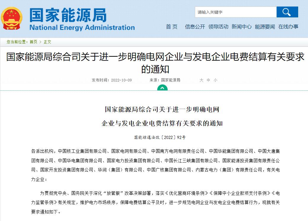 國家能源局綜合司關(guān)于進(jìn)一步明確電網(wǎng)企業(yè)與發(fā)電企業(yè)電費結(jié)算有關(guān)要求的通知