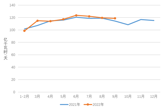 圖3 2021、2022年分月制造業(yè)日均用電量