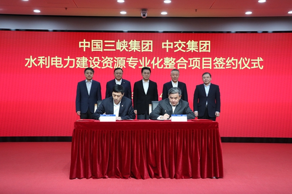 2023年1月14日,中國三峽集團與中交集團水利電力建設(shè)資源專業(yè)化整合項目簽約儀式在北京舉行,國資委黨委委員、副主任翁杰明出席儀式并講話。