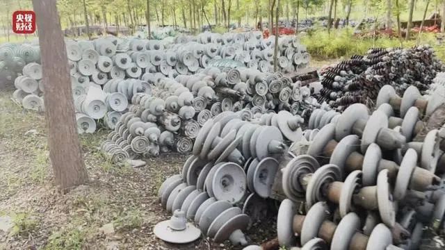 絕緣子是電力線路安全運(yùn)營(yíng)的重要保障之一,起著非常關(guān)鍵的絕緣作用。在河北河間市西舊館村,樹林里道路兩旁堆放著一堆堆絕緣子,金屬表面有明顯被腐蝕的痕跡,有的甚至銹跡斑斑。