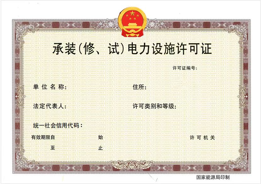 自2023年12月21日起,在全國范圍內(nèi)推行電力業(yè)務(wù)許可證(含發(fā)電類、輸電類、供電類)、承裝(修、試)電力設(shè)施許可證(含承裝、承修、承試類一至五級)電子證照(證照樣式見附件)。電子證照與紙質(zhì)證照同步制發(fā)、并行使用,具有同等法律效力。