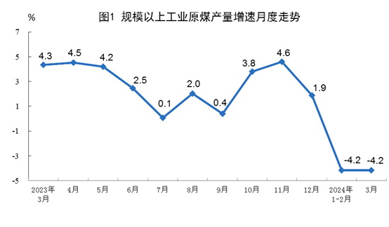 原煤生產(chǎn)基本穩(wěn)定,進口同比增長。3月份,規(guī)上工業(yè)原煤產(chǎn)量4.0億噸,同比下降4.2%,增速與1—2月份持平;日均產(chǎn)量1288萬噸,仍處較高水平。進口煤炭4138萬噸,同比增長0.5%。1—3月份,規(guī)上工業(yè)原煤產(chǎn)量11.1億噸,同比下降4.1%。進口煤炭1.2億噸,同比增長13.9%。