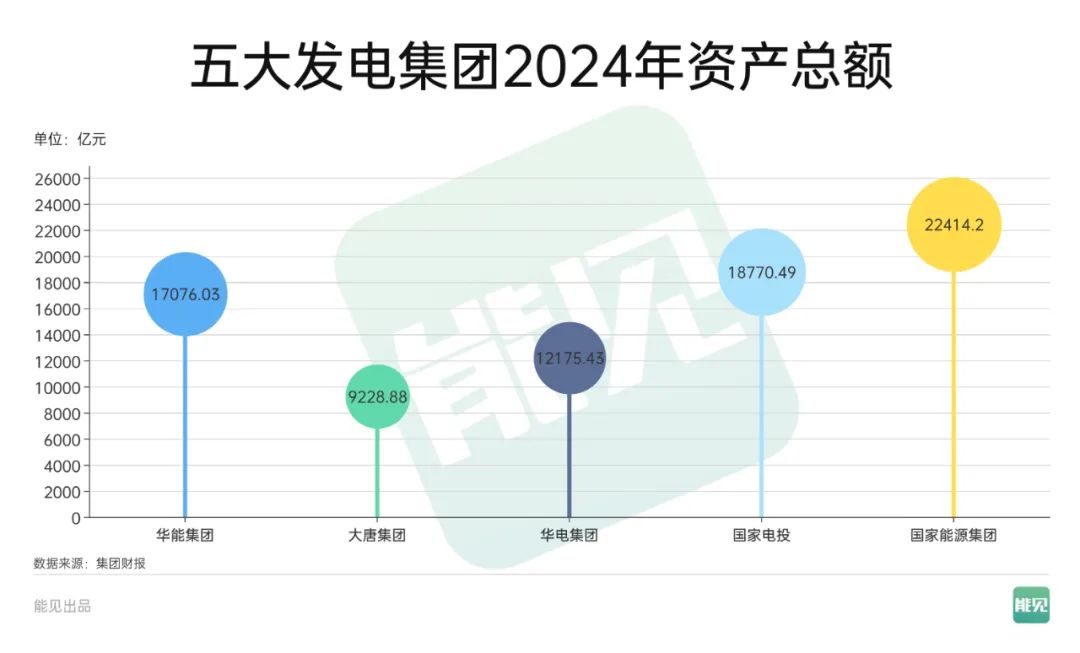 再來看資產(chǎn)總額。五大發(fā)電集團(tuán)資產(chǎn)總額合計(jì)即將突破8萬億元。值得注意的是,大唐集團(tuán)2024年資產(chǎn)總額為9228.88億元,按照其2024年的優(yōu)異表現(xiàn):發(fā)電總裝機(jī)規(guī)模突破2億千瓦,已實(shí)現(xiàn)新能源開工、投產(chǎn)規(guī)模等創(chuàng)歷史新高,國(guó)家首批6個(gè)百萬千瓦級(jí)裝機(jī)新能源基地全部投產(chǎn)。新能源項(xiàng)目建設(shè)的提速,能否加速大唐進(jìn)入“萬億俱樂部”步伐,可以關(guān)注一下。
