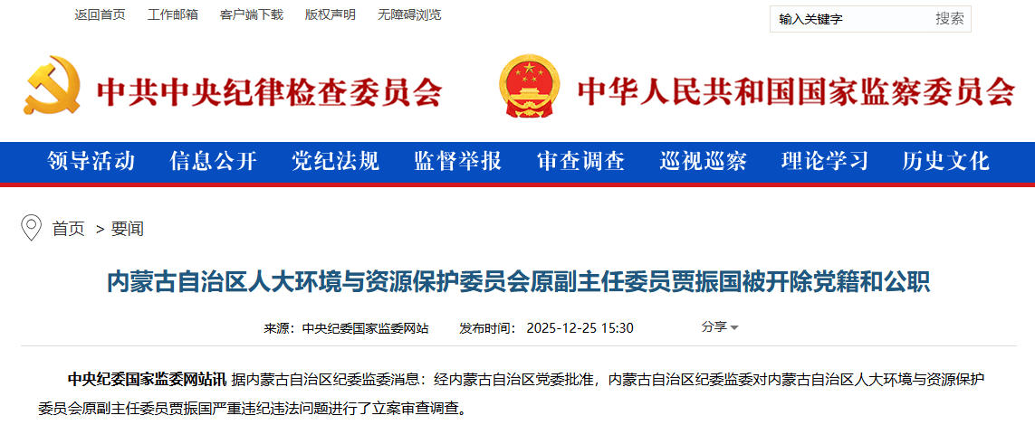 2025年12月,賈振國(guó)嚴(yán)重違紀(jì)違法被開除黨籍和公職。