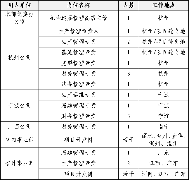 根據(jù)公司發(fā)展需要,浙江分公司本部及其所屬單位,杭州公司、寧波公司、廣西公司、各事業(yè)部現(xiàn)面向社會(huì)公開招聘相關(guān)人員,具體事項(xiàng)公告如下: