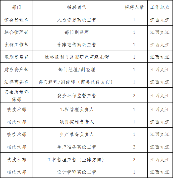 面向社會公開招聘。國家電投集團系統(tǒng)內員工優(yōu)先。